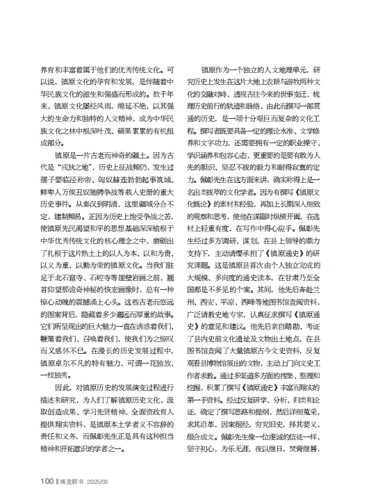 因此,对镇原历史的发展演变过程进行描述和研究,为人们了解镇原历史文化、汲取创造成果、学习先贤精神、全面资政育人提供翔实资料,是镇原本土学者义不容辞的责任和义务,而佩彰先生正是具有这种担当精神和开拓意识的学者之一。